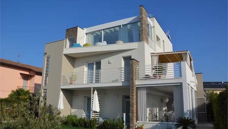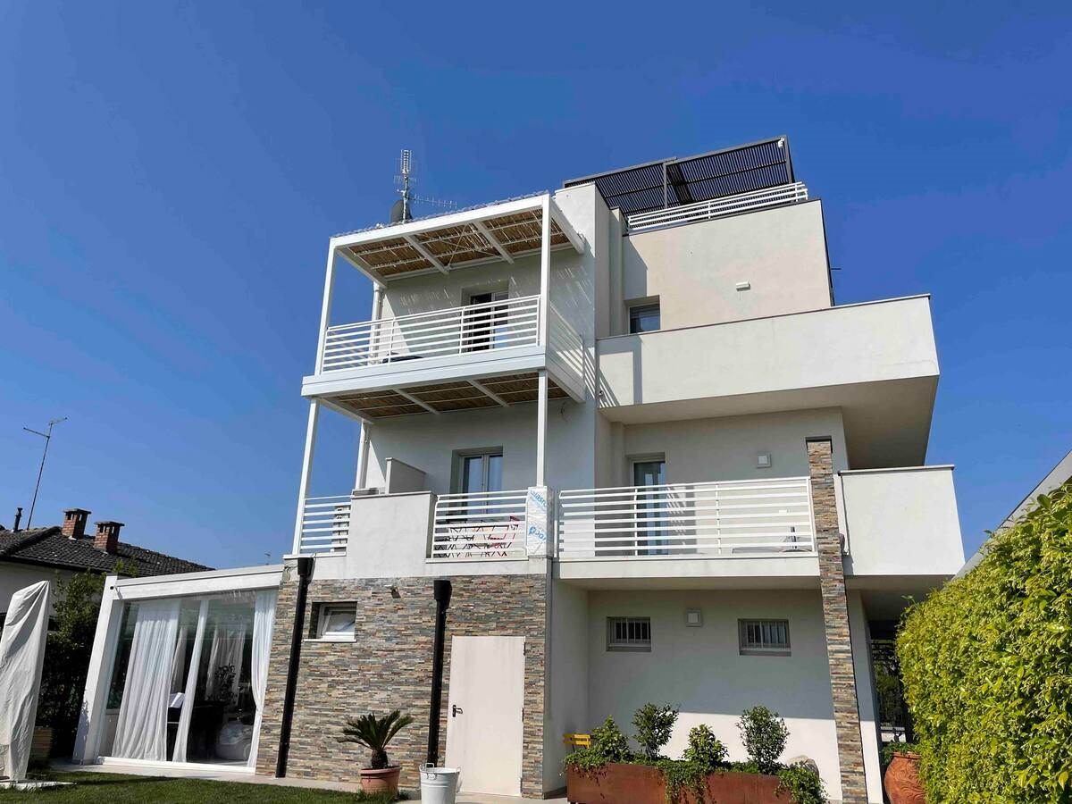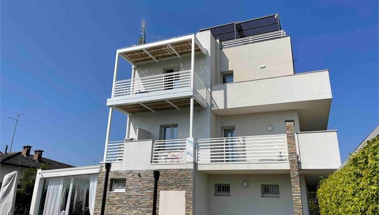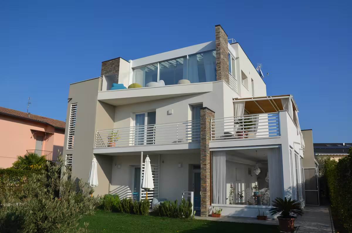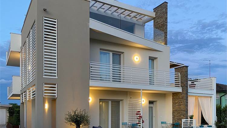 Located in Peschiera del Garda, just a short walk from the shores of Lake Garda, this contemporary villa stands out for its modern design and generous living spaces. Offering 320 sqm of interior space and 100 sqm of private outdoor areas, the property is currently divided into three independent units and includes a total of 9 bedrooms and 8 bathrooms, providing exceptional versatility for large families, guests, or multi-generational living. On the top floor, an exclusive penthouse ensures maximum privacy, abundant natural light, and elevated views over the surroundings.