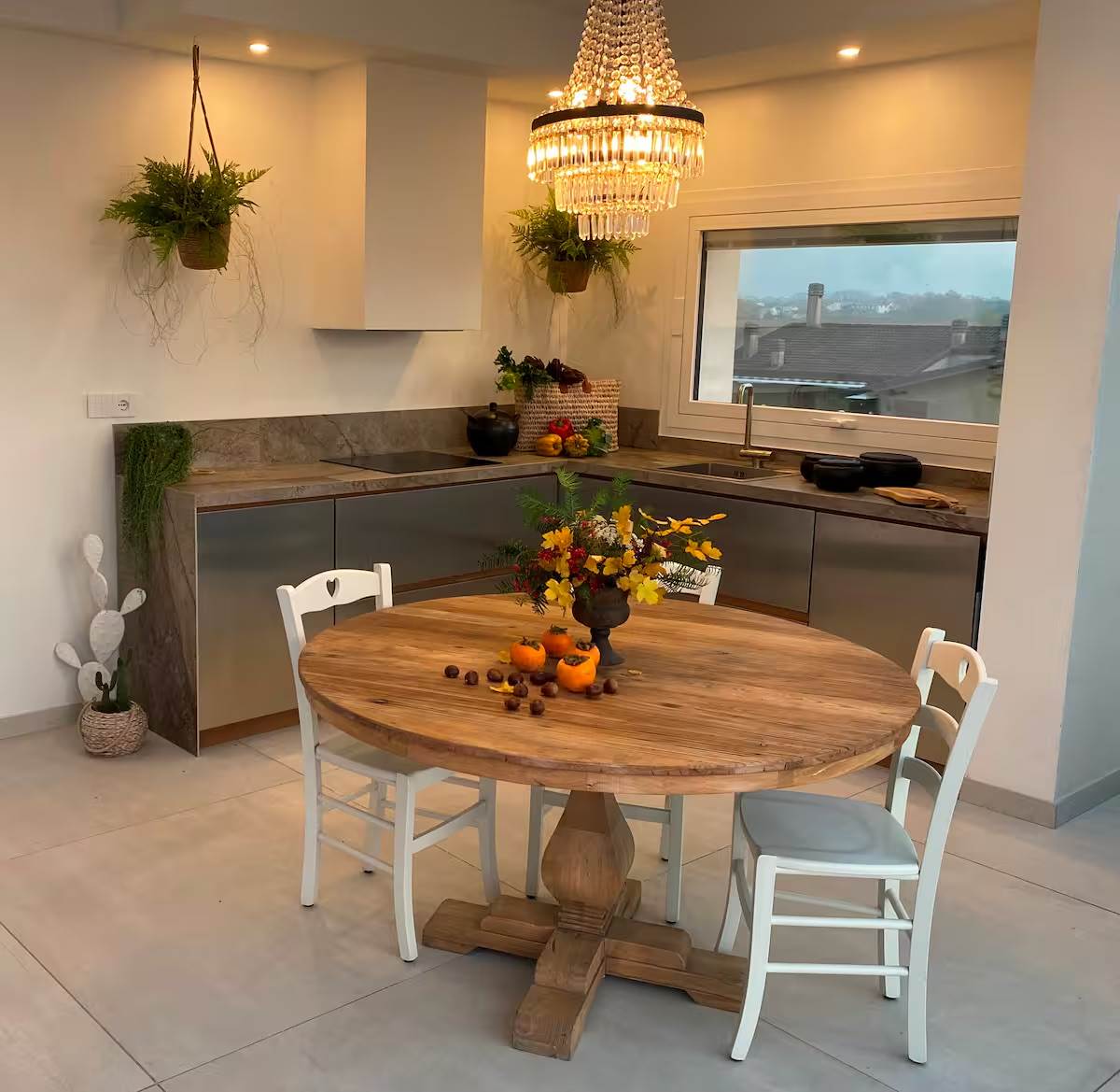 The property boasts excellent energy performance, featuring solar panels, PVC window frames, triple-glazed windows, and heat pumps that provide outstanding insulation and reduced energy consumption. Additional amenities include air conditioning, step-free access, an electric gate, a garage, and outdoor parking spaces.