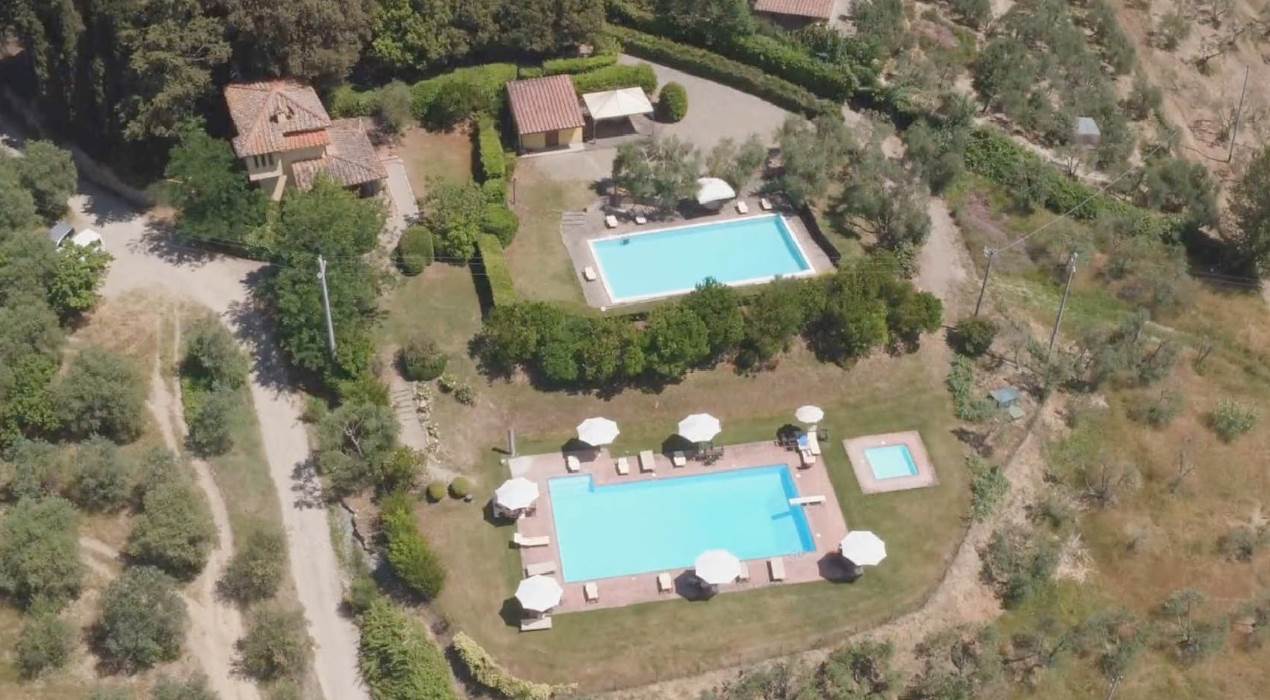 Edifici: circa 4.000 m² ristrutturati ad uso ricettivo, con ulteriori 4.000 m² di edifici da restaurare, distribuiti su tre colline (4 fabbricati su una collina, 1 su un’altra, 1 su un’altra ancora).